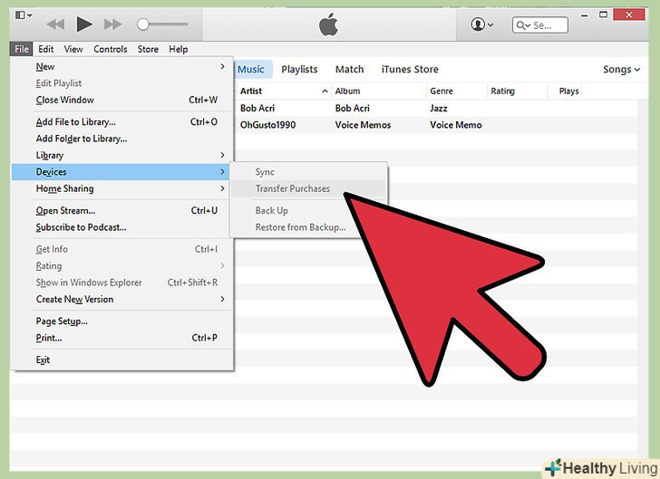 - Якщо вікно не відкрилося, можливо, минулого разу ви вказали iTunes не показувати це повідомлення. У цьому випадку натисніть "Файл" gt;» пристрої «gt;»Перенести покупки".