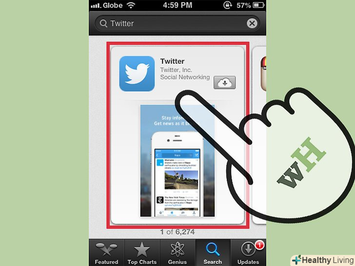 Виберіть перше спливаюче в списку додаток.це буде офіційний додаток "Твіттер".