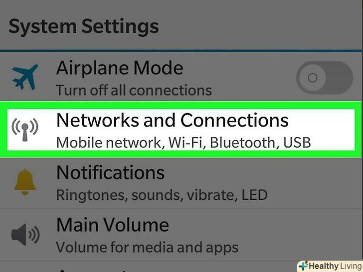 НатиснітьNetwork and Connections (Мережа та з'єднання).щоб знайти цю опцію, прокрутіть сторінку налаштувань вниз.