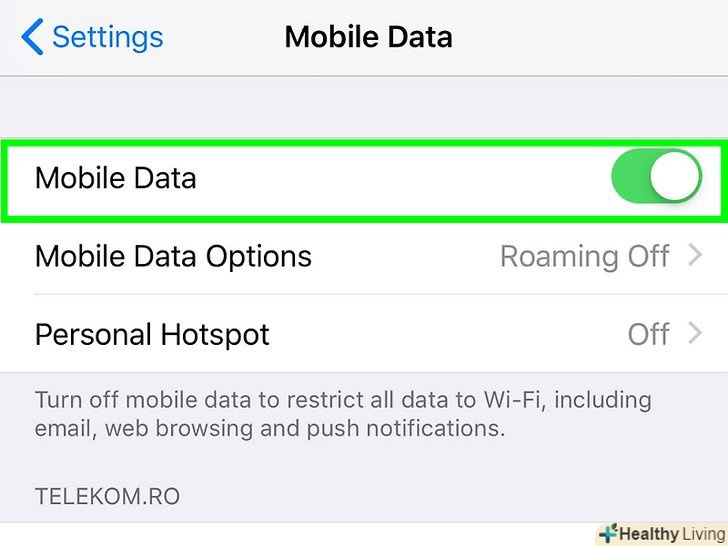 Пересуньте повзунок уСтільникові дані в положення «Включити». Відкриються налаштування мережі.