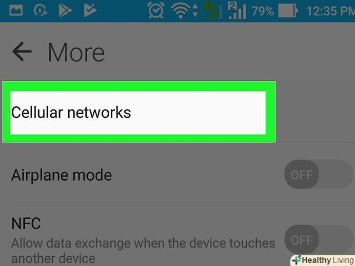 НатиснітьМобільні мережі.ця опція знаходиться в меню налаштувань