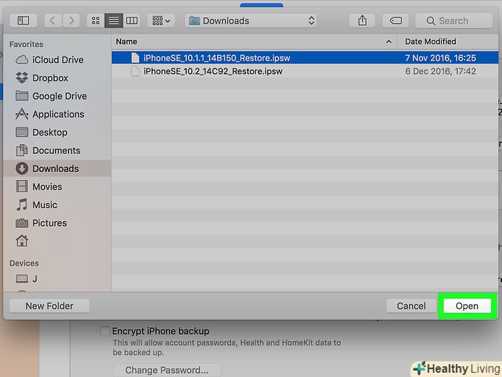 Клацніть по IPSW-файлу.ви знайдете його в папці для завантажень на комп'ютері; значок файлу має вигляд логотипу iTunes.
