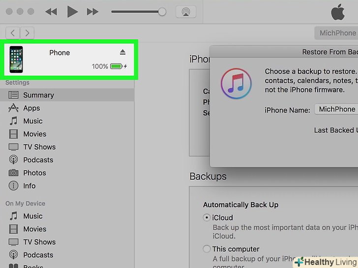 Клацніть по значку "пристрій". цей значок у вигляді iPhone розташований над бічною панеллю в лівій частині вікна iTunes.