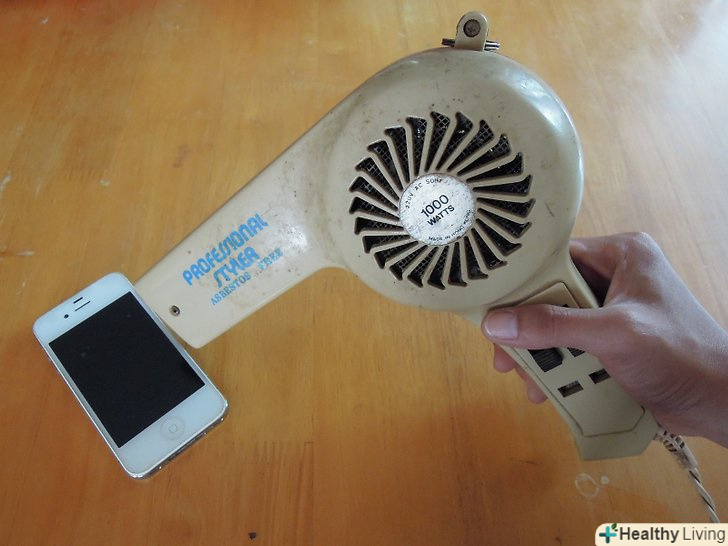 Висушіть його!Візьміть хороший фен і включіть на середньо низькій швидкості. Тримайте фен на хорошій відстані від телефону. Увімкніть його на середньо низьких налаштуваннях і просушіть пристрій. Обертайте пристрої вперед-назад і з боку в бік під час сушіння. Робіть це протягом 20-25 секунд. Потім просушіть задню панель пристрою протягом приблизно 10-15 секунд на середньо-високій швидкості, а потім передню панель протягом 10-15 секунд. Висушіть його!Візьміть хороший фен і включіть на середньо низькій швидкості. Тримайте фен на хорошій відстані від телефону. Увімкніть його на середньо низьких налаштуваннях і просушіть пристрій. Обертайте пристрої вперед-назад і з боку в бік під час сушіння. Робіть це протягом 20-25 секунд. Потім просушіть задню панель пристрою протягом приблизно 10-15 секунд на середньо-високій швидкості, а потім передню панель протягом 10-15 секунд.