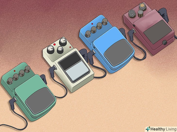 Завжди починайте з Вашого педального тюнера.коли ви з'єднуєте послідовно кілька педалей, їх порядок дуже важливий. Перша педаль підключається безпосередньо до гітари, а крайня в ланцюзі – підключається до підсилювача. Різні правила застосовні до різних педалей, але ви повинні переконатися, що першим в ланцюзі у вас йде педальний тюнер, якщо він у вас є.[2]- Гітарному тюнеру, щоб він працював правильно, потрібен чистий, нефільтрований, що йде безпосередньо звук. Якщо ви встановите педаль дісторшна перед педальним тюнером, тюнер буде читати спотворений сигнал. Це може звучати круто, але тюнер буде працювати погано. Ставте ваш тюнер першим в ланцюзі і ваша гітара буде правильно налаштована.