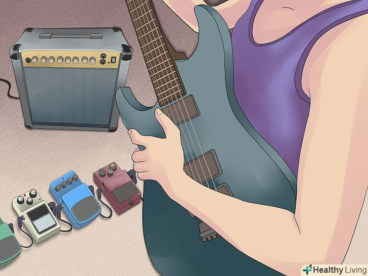Поекспериментуйте з педаллю.для того, щоб активувати більшість педалей, ви можете наступити на кнопку або важіль, розташований під ручками регулювання ефектів. Зазвичай, загоряється червона або зелена лампочка, що показує, що педаль активована. Вивчіть функції педалі, підвищуючи ефекти під час гри, щоб відчути звук. Пограйтеся з настройками ефектів.- Для того, щоб відключити більшість педалей, вам потрібно наступити на кнопку або важіль ще раз. Тоді педаль відключиться від ланцюга і сигнал піде безпосередньо в Підсилювач. Пограйтеся з включенням і вимиканням педалі, щоб отримати такий звук, який ви хочете.