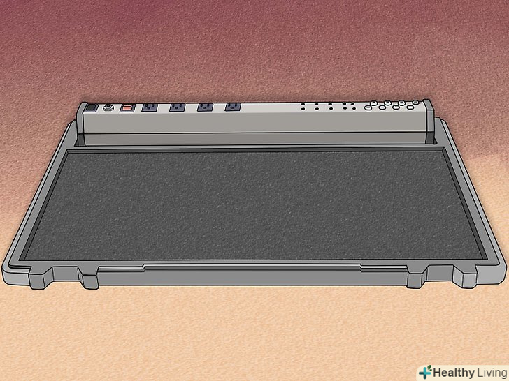 Увімкніть ваші Підсилювач і педаль.щоб переконатися, що педаль і підсилювач відключені, перш ніж ви будете їх з'єднувати, вам потрібно підключити їх до електрики. Підключіть до електрики педаль і підсилювач і вимкніть їх.- Деякі гітарні педалі комплектуються 9ти вольтовими адаптерами, в той час як інші живляться від батарейок, а багато хто має обидві опції. Для багатьох гітаристів зручніше педалі на батарейках, тому що з ними підключати потрібно на одну річ менше, але вони доставляють і клопоти, тому що батарейки сідають і коштують недешево.