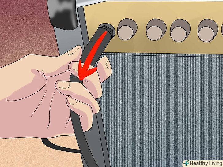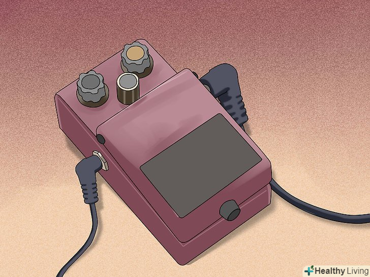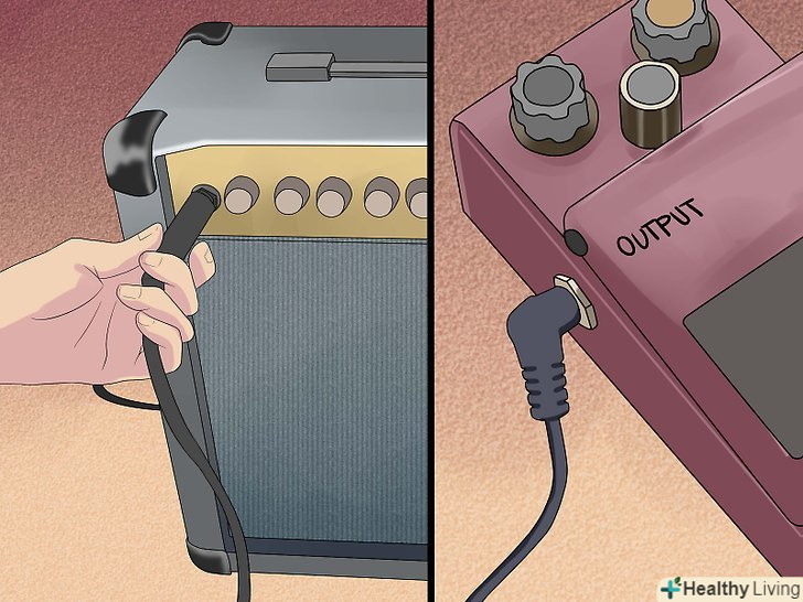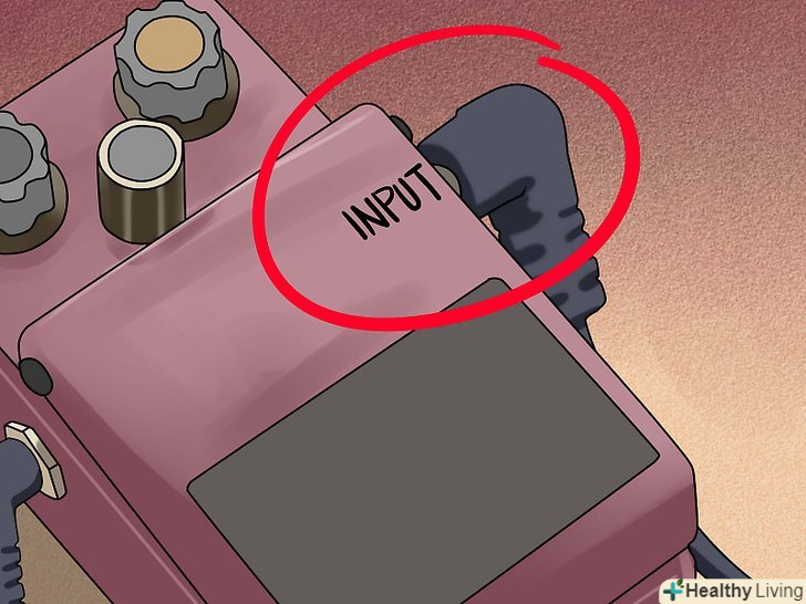 Підключіть вашу гітару до вхідного роз'єму.багато педалі мають тільки два роз'єми-вхід і вихід. Ці роз'єми зазвичай розташовуються на протилежних сторонах корпусу гітари, в залежності від моделі, і підтримують стандартний 6 мм аудіо кабель. На корпусі педалі знайдіть вхідний і вихідний роз'єми і підключіть вашу гітару до вхідного.[1]- Новачок може заплутатися в безлічі входів і виходів. Запам'ятайте: аудіо сигнал генерується на звукознімачах вашої гітари і звідти йде по кабелю до підсилювача. Гітара, таким чином, завжди буде підключатися до входу на педалі, тому що це відповідає напрямку проходження сигналу. Ви граєте на гітарі, звідти сигнал йде " в "педаль, звідки" виходить «і йде» в " Підсилювач.