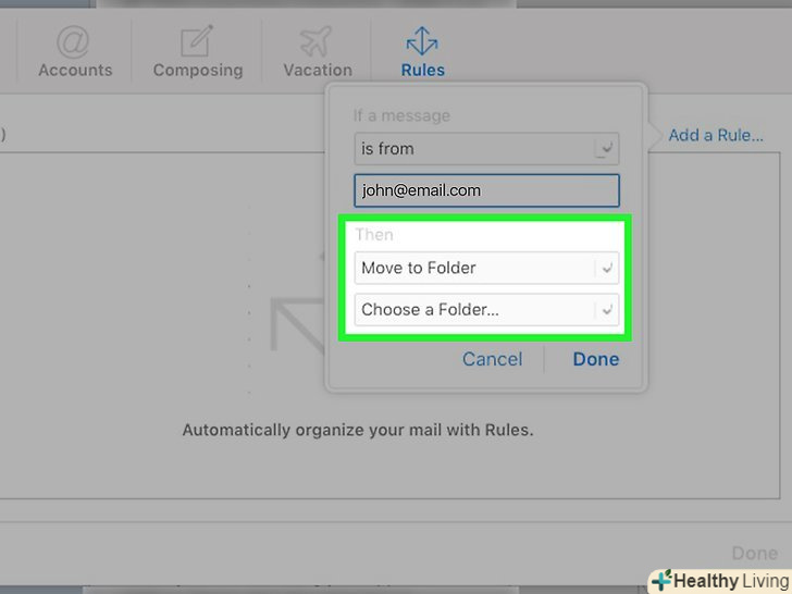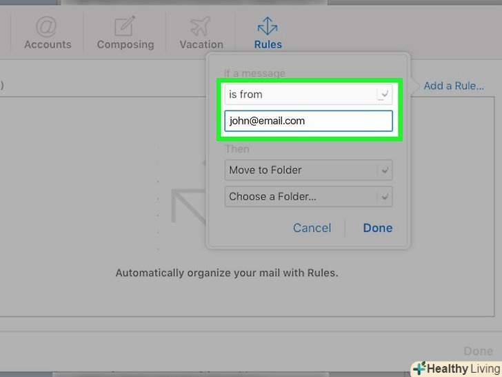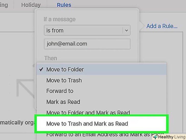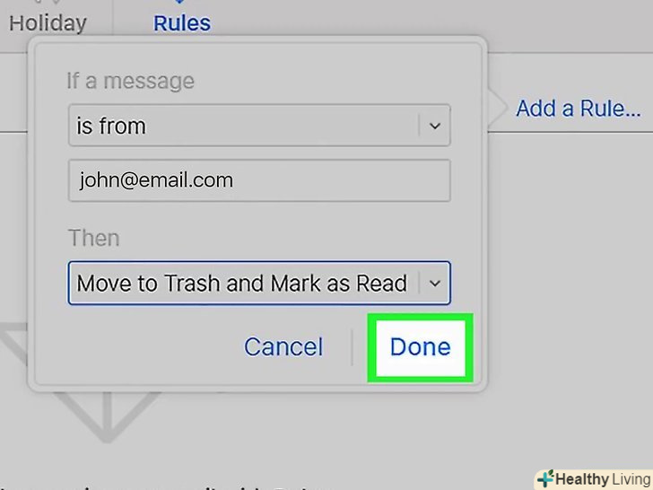 ТоркнітьсяГотово.ви знайдете цю опцію внизу меню. Так ви створите правило, яке буде відправляти листи з заблокованої адреси в кошик. Правило набуде чинності на комп'ютері та мобільному пристрої.
