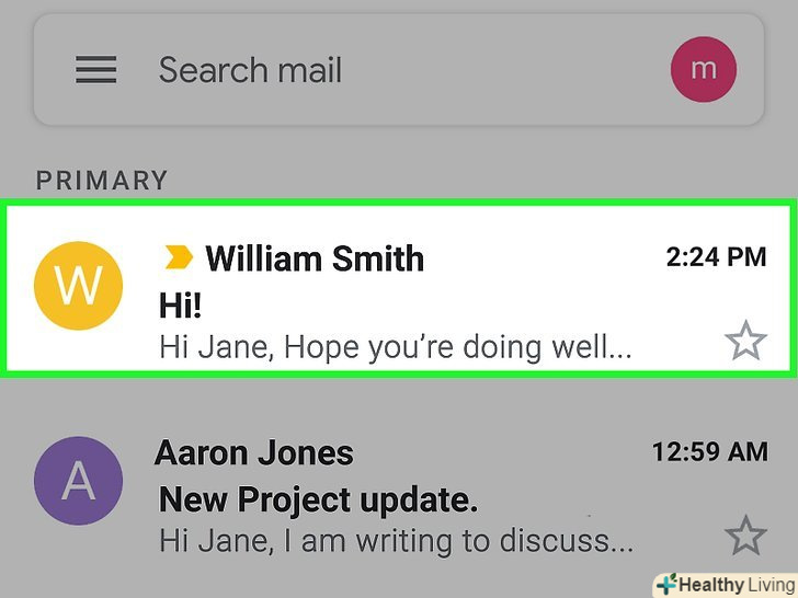 Запустіть програму Gmail.натисніть на значок у вигляді конверта з червоною літерою "М". Ви перейдете до своєї поштової скриньки Gmail.