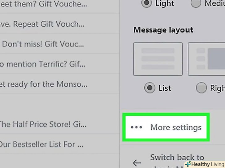 ТоркнітьсяІнші налаштування. це опція в нижній частині меню. Відкриються налаштування поштової скриньки.