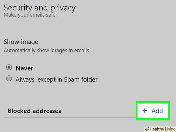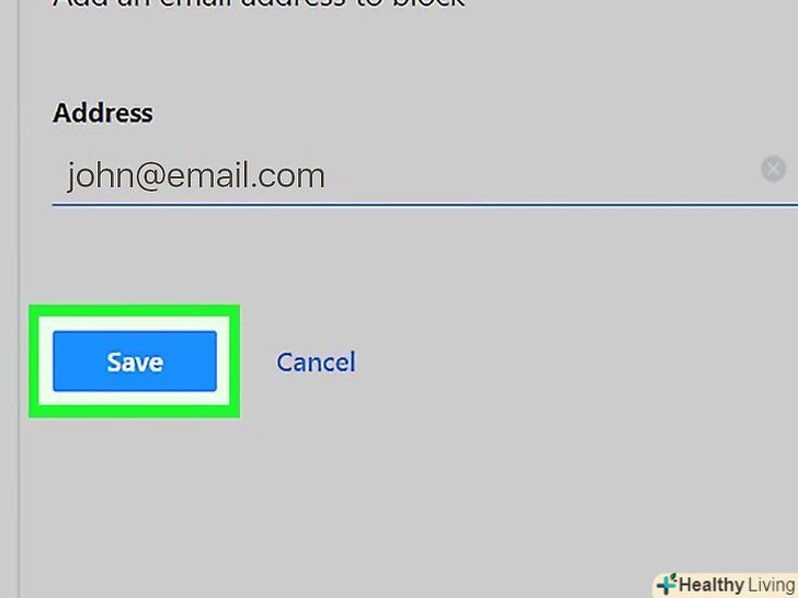 ТоркнітьсяДодати.ця кнопка знаходиться праворуч від рядка з електронною адресою. Адреса буде внесена в чорний список.