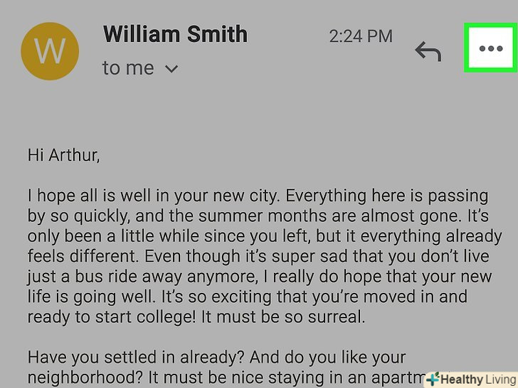 Торкніться... навпроти імені відправника, щоб відкрити меню. ви знайдете цей значок праворуч від листа навпроти імені відправника у верхній частині сторінки.