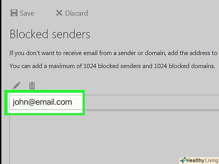 Введіть електронну адресу, яку хочете заблокувати.зробіть це в рядку, яка знаходиться вгорі розділу "заблоковані відправники".