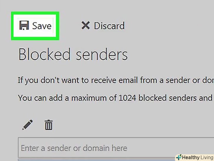 ТоркнітьсяЗберегти. це кнопка верху сторінки»Параметри". Внесені зміни будуть збережені, тобто листів із заблокованої адреси більше не буде ні на комп'ютері, ні на мобільному пристрої.
