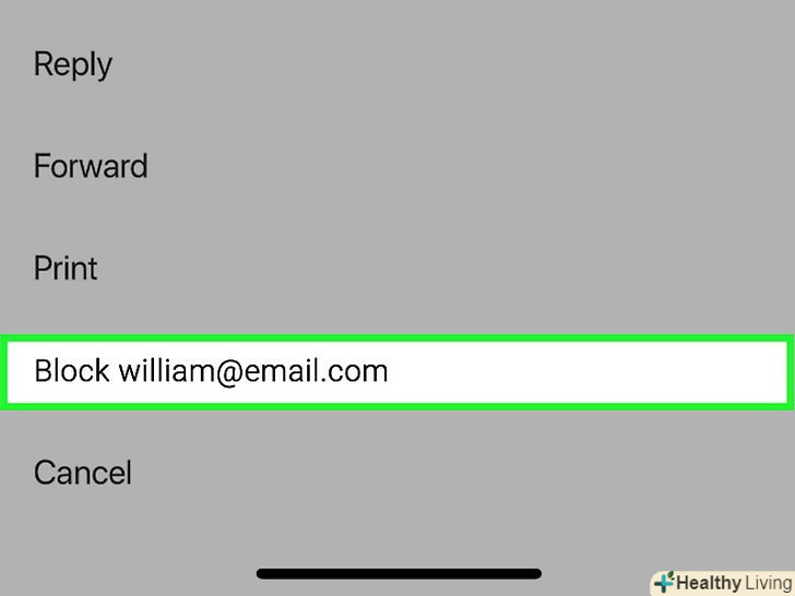 ТоркнітьсяЗаблокувати [ім'я відправника]. це остання опція в меню. Адреса відправника буде додано в чорний список - тепер Всі листи від цього користувача будуть відправлятися в папку "Спам".