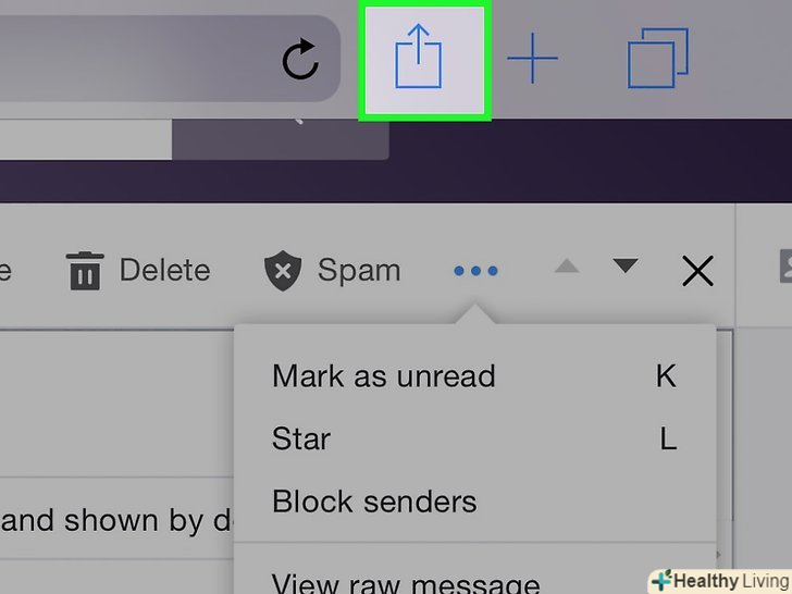 Торкніться «Поділитися». цей значок у вигляді квадрата з спрямованою вгору стрілкою знаходиться у верхньому правому куті браузера Safari. Відкриється меню.