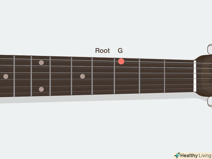 Виберіть початкову ноту (основний тон) для вашої гами. Тип гами, яку ми вивчимо в цьому розділі-це мажорна гамма. Це хороший вибір для початкового навчання, так як більшість інших гам засновані на мажорній гамі. Одним чудовим властивістю гам є те, що ви можете грати їх, починаючи з будь-якої ноти. Щоб почати, виберіть будь-яку ноту нижче 12-ого лада на низькій Мі струні або струні ля. Граючи на одній з низьких струн, у вас буде багато місця для переміщення вгору і вниз по гамі.- Для прикладу, давайте почнемо зСіль (Нижня ми струна, третій лад). У цьому розділі ви дізнаєтеся, як грати гаму сіль-мажор — гами називаються згідно їх основним тонам.
