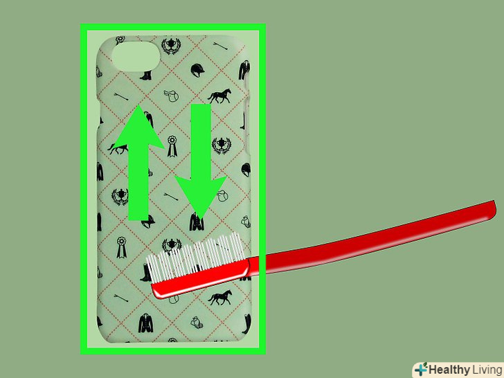 Протріть поверхню чохла зубною щіткою.використовуючи поступальні або кругові рухи, пройдіться по всіх важкодоступних куточках і щілинах на чохлі. Очистіть пластикову і силіконову частини чохла зовні і всередині.[4]