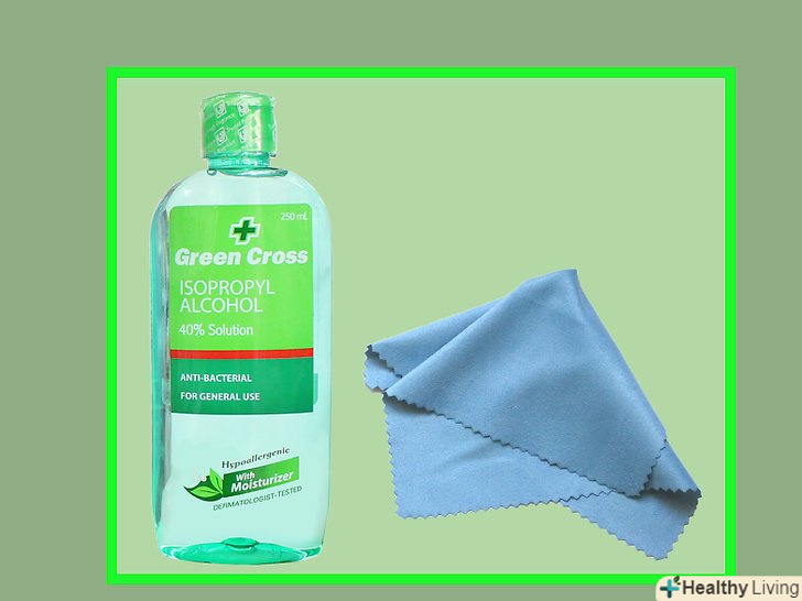 Змочіть м'яку тканину в медичному спирті (70% або вище).якщо спирт знаходиться в аерозольному балончику, розпорошите його прямо на корпус телефону, а не на тканину.[8]