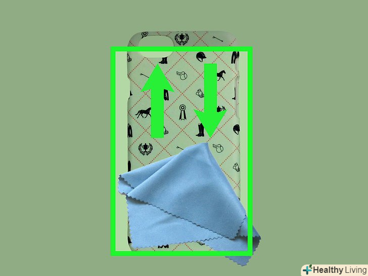 Сполосніть чохол і насухо витріть м'якою тканиною.обов'язково змийте всю мильну воду, перш ніж протирати чохол. Щоб не подряпати чохол, витріть його м'якою тканиною.[5]