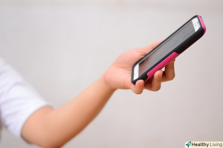 Використовуйте прилад, застосовуваний з вільними руками або бездротові навушники, щоб збільшити відстань між телефоном і вашою головою.найкращий підхід при використанні стільникового телефону-це створити дистанцію між вами і випромінюючим сигнали телефоном. При розмові поставте телефон на гучномовець. Опція гучномовця - якраз те, що потрібно, так як завдяки ній ви зможете тримати телефон осторонь від себе, коли будете розмовляти.- Намагайтеся частіше листуватися, а не говорити по стільниковому телефону для того, щоб тримати мобільний подалі від своєї голови. Однак краще звести до мінімуму навіть обмін SMS-ками. І тримайте мобільний телефон подалі від свого тіла, коли пишете електронні листи або SMS-ки.[9]