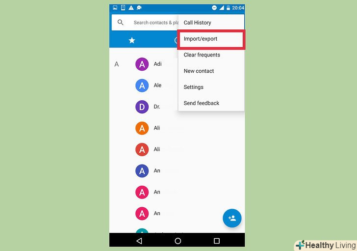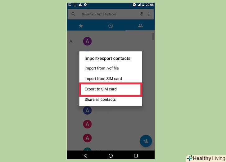 Відкрийте список контактів на старому телефоні.всі контакти можна скопіювати на SIM-карту, але це не завжди найзручніший варіант. Цей спосіб стане в нагоді, якщо ви переходите на простий телефон, але в разі смартфона контакти синхронізуються з вашим обліковим записом Google або Apple ID.