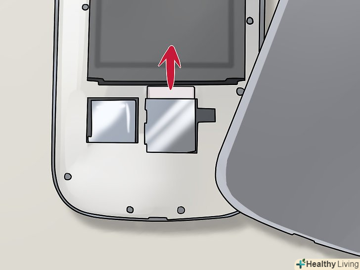 - Якщо слот SIM - карти знаходиться під батареєю, витягніть карту з слота або злегка натисніть на нього, щоб він піднявся.