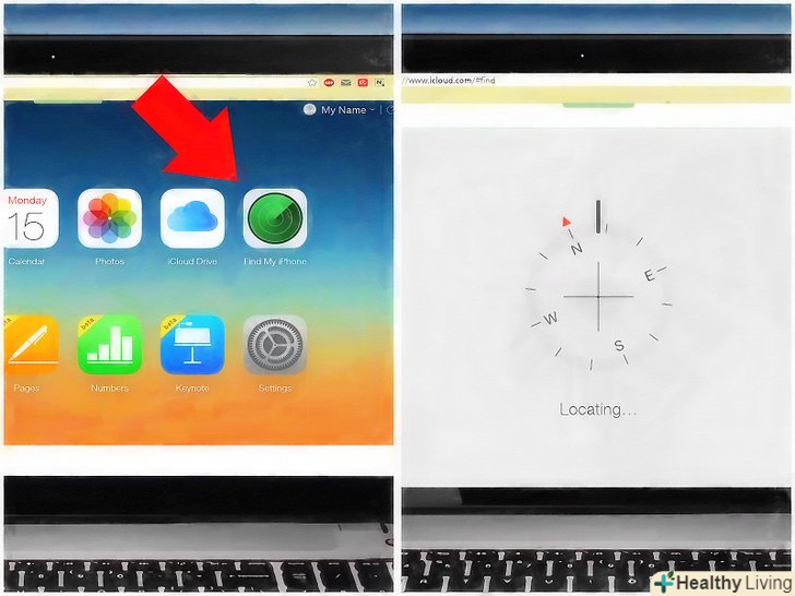Пошук iPhone.для знаходження загубленого iPhone скористайтеся додатком Find My iPhone. Якщо у вашому смартфоні такого додатка немає, скачайте його в App Store. Ця програма досить точно визначить місце розташування вашого iPhone, але пристрій повинен бути включений і мати доступ до Інтернету.[9]- Увійдіть в ваш аккаунт iCloud (з комп'ютера або мобільного пристрою) і натисніть «Знайти мій iPhone». Місце розташування вашого смартфона відобразиться на карті, за допомогою якої Ви зможете стежити за його переміщенням.