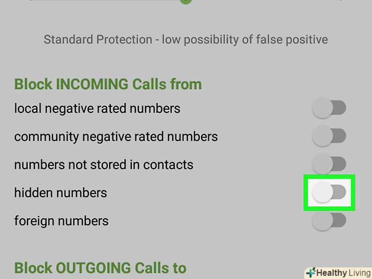 Клацніть по сірому ползункуу опції «Блокувати анонімні дзвінки». він стане синім