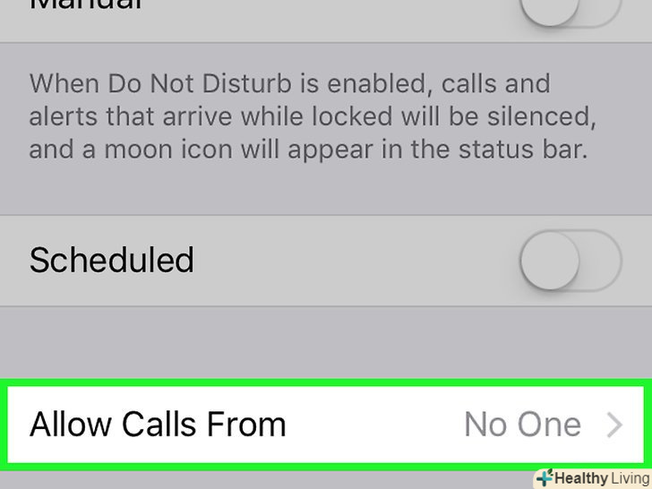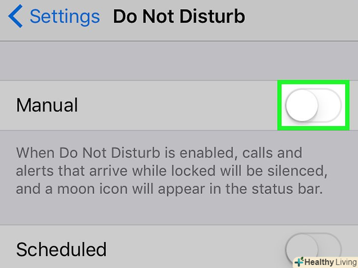Клацніть по білому ползункубіля опції «Не турбувати». він стане зеленим