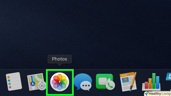 Відкрийте програму "Фото".клацніть по значку у вигляді різнобарвної ромашки в доці.