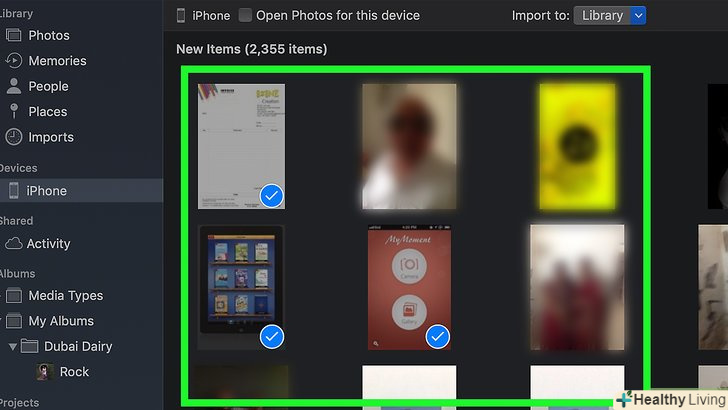 Виберіть фотографії, які потрібно скопіювати.для цього натисніть на кожну фотографію.- Також можна вибрати "імпортувати всі нові фото «у верхньому правому куті вікна програми»Фото".
