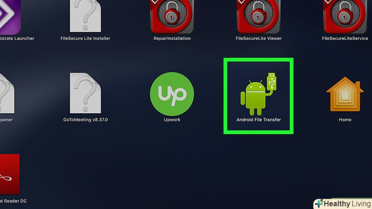 Відкрийте програму "Android File Transfer".якщо воно не запустилося автоматично, клацніть по значку у вигляді космічного корабля в доці, а потім натисніть на зелений логотип Android.