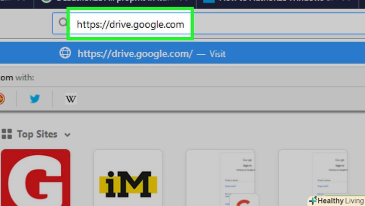 Відкрийте Google Диск на комп'ютері.у веб-браузері перейдіть на сторінку https://drive.google.com/. відкриється головна сторінка Google Диска, якщо ви вже авторизувалися.- Якщо ви ще не авторизувалися, натисніть "Перейти до Google Диска" посередині сторінки, а потім введіть адресу електронної пошти та пароль.