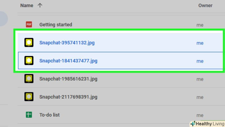 Виберіть фотографії, які ви завантажили в Google Диск.утримуйте ліву кнопку миші і проведіть покажчиком по завантажених фотографіях. Вони будуть виділені синім маркером.