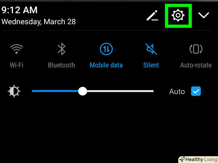 - Також можна провести вниз по панелі сповіщень, яка розташована вгорі екрану, і натиснути значоку верхньому правому куті.