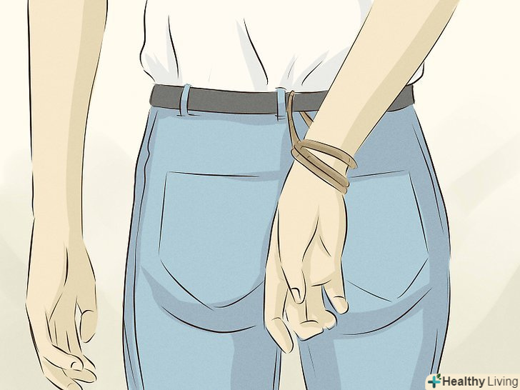Зв'яжіть переважну руку за спиною, щоб ще більше ускладнити завдання.такий прийом змусить вас користуватися виключно протилежною рукою. Це відмінний спосіб змусити розум і тіло швидко адаптуватися, проте не варто робити це відразу, а краще спочатку пару днів потренуватися.[5]- Найпростіший спосіб закріпити переважаючу руку за спиною-цеобв'язати її зап'ясті мотузкою, а потім прив'язати інший кінець цієї мотузки до поясний петлі брюк за спиною. Це досить важко зробити самостійно, тому, швидше за все, вам знадобиться допомога іншої людини.