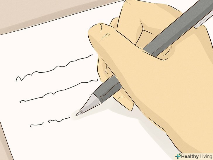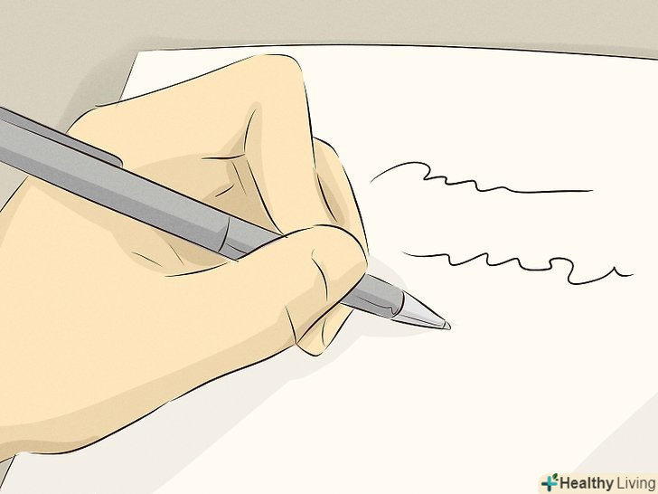 Тримайте ручку або олівець протилежною рукою так само, як і переважаючою.напишіть що-небудь переважаючою рукою перед дзеркалом, щоб подивитися, як виглядає лист іншою рукою. Це дасть вам чітку візуальну підказку і допоможе мозку представити те ж саме дію у виконанні протилежної руки. Потім потренуйтеся тримати ручку або олівець протилежною рукою, щоб освоїтися.[6]- Не напружуйте зап'ястя. Незважаючи на можливе бажання схопити ручку якомога міцніше, утворивши зап'ястям форму кігтя, пам'ятайте — так вам буде важче писати і ви можете завдати собі травму.