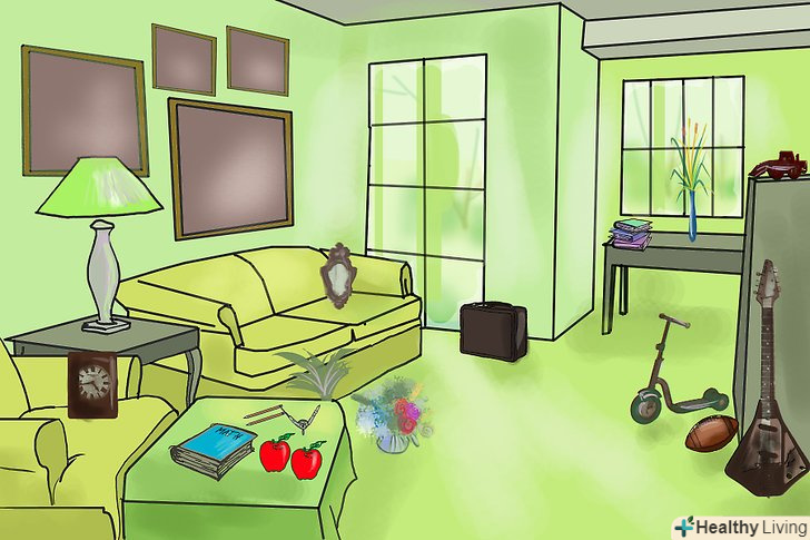 Щодня приділяйте трохи часу на відвідування кімнати.повертаючись туди, не міняйте деталі і не пересувайте предмети. Просто все запам'ятовуйте і знайомтеся з обстановкою якомога більше.- Кожен раз Ви можете заглиблюватися в найдрібніші деталі щодо розташування речей. Наприклад, додавати меблі, предмети, картини на стіни або декоративні рослини. Так у вас буде більше сполучних ланок для запам'ятовування.