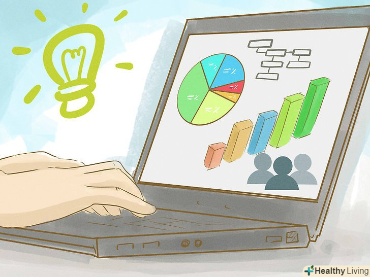 Включіть ілюстративні матеріали у ваш звіт про подію.набагато ефективніше запропонувати увазі аудиторії діаграму, що відображає статистичну інформацію, замість того щоб втомлювати глядачів незліченною кількістю чисел і дат.- Якщо Захід передбачав наявність нового продукту, ви можете прикріпити його фото. Фотографії самого заходу допоможуть проілюструвати звіт про цей захід. Постарайтеся викласти фотографії реклами для спонсорів на сайт, щоб підкріпити свій звіт. Знову ж таки, все це не може чекати до кінця заходу.