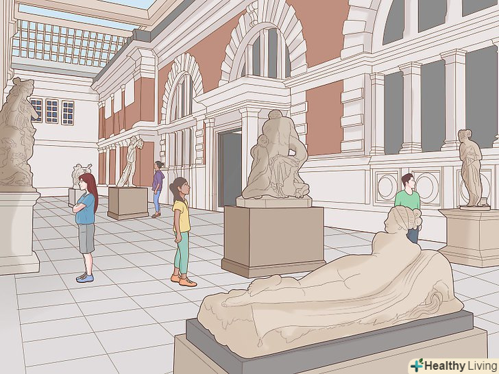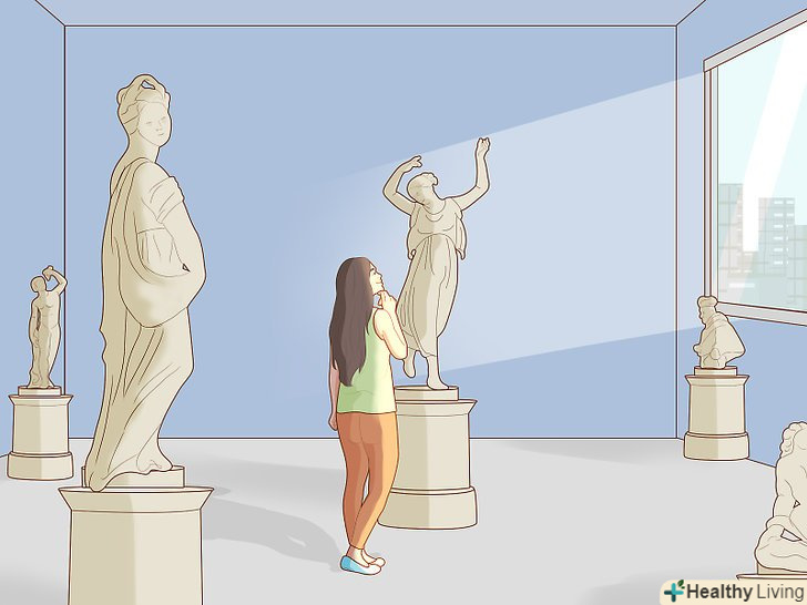 Проводьте час у різних місцях, щоб отримувати нові стимули.незнайома обстановка може приносити натхнення і пробуджувати в нас креативність, пропонуючи нові види, звуки і враження. Відвідуйте і вивчайте незнайомі ресторани, кафе і магазини в своєму районі. Відвідуйте парки, бібліотеки і музеї в довколишніх районах, щоб знайомитися з новим оточенням і виходити із зони комфорту.[12] Проводьте час у різних місцях, щоб отримувати нові стимули.незнайома обстановка може приносити натхнення і пробуджувати в нас креативність, пропонуючи нові види, звуки і враження. Відвідуйте і вивчайте незнайомі ресторани, кафе і магазини в своєму районі. Відвідуйте парки, бібліотеки і музеї в довколишніх районах, щоб знайомитися з новим оточенням і виходити із зони комфорту.[12]