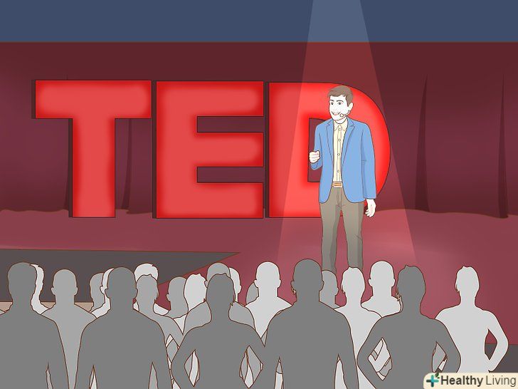 Слухайте TED-виступи або інші надихаючі лекції.Мотиваційні промови можуть виступати каталізаторами творчості, підвищуючи оптимізм і мотивацію. Слухаючи про чужий досвід і творчі зусилля, можна отримати потужний поштовх для досягнення власних креативних цілей. Пошукайте в Інтернеті TED-виступи, що відносяться до ваших творчих інтересів, або відвідуйте лекції в місцевому коледжі або університеті.[16] Слухайте TED-виступи або інші надихаючі лекції.Мотиваційні промови можуть виступати каталізаторами творчості, підвищуючи оптимізм і мотивацію. Слухаючи про чужий досвід і творчі зусилля, можна отримати потужний поштовх для досягнення власних креативних цілей. Пошукайте в Інтернеті TED-виступи, що відносяться до ваших творчих інтересів, або відвідуйте лекції в місцевому коледжі або університеті.[16]- Якщо ви володієте англійською мовою або хочете подивитися TED-виступи з субтитрами, пошукайте лекції наhttps://www.ted.com/talks . російськомовну версію виступів можна знайти на https://ted-talks.online/