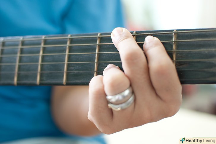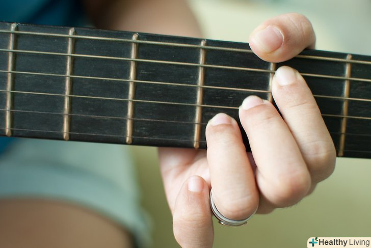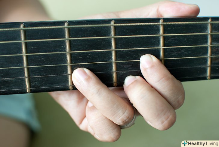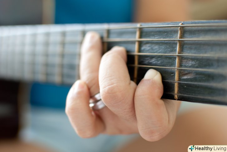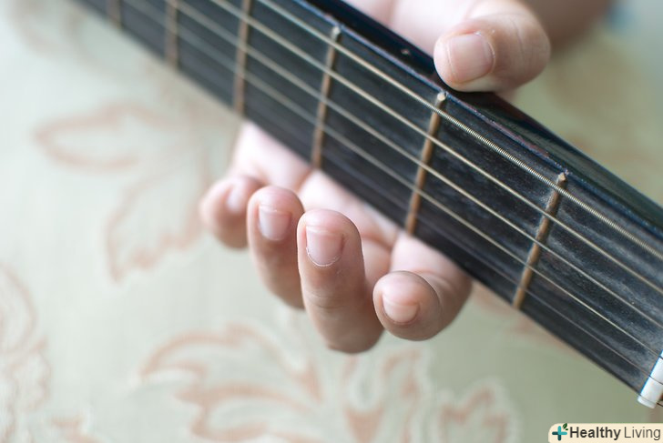 Наростіть мозолі на кінчиках пальців. це завдає біль. Але як тільки з'являться мозолі, біль, яку ви колись відчували, зникне. Чим більше ви практикуєтеся, тим швидше це станеться. Існують пристрої для нарощування мозолів, які ви можете купити.