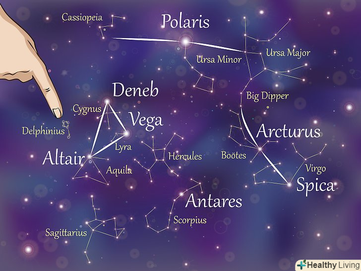 І нарешті, ми знайдемо одне з найменших з 88 офіційних сузір'їв, на південь від літнього трикутника.це сузір'я дельфіна (яке і справді виглядає як свій тезка). І нарешті, ми знайдемо одне з найменших з 88 офіційних сузір'їв, на південь від літнього трикутника.це сузір'я дельфіна (яке і справді виглядає як свій тезка).