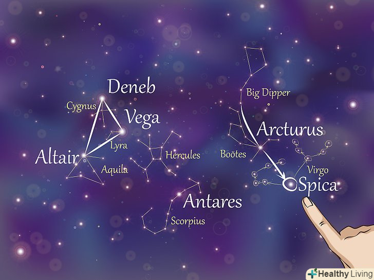 Давайте рушимо на захід назад до яскравої зірки Арктур.оскільки ми вже пройшли по "дузі до Арктуру", то тепер ми можемо переміститися до Спіке, що є найяскравішою зіркою в сузір'ї Діви. Давайте рушимо на захід назад до яскравої зірки Арктур.оскільки ми вже пройшли по "дузі до Арктуру", то тепер ми можемо переміститися до Спіке, що є найяскравішою зіркою в сузір'ї Діви.