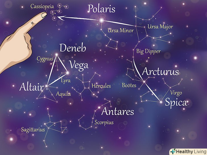 Якщо ви продовжите вести лінію через Полярну зірку, то ви дійдете до сузір'я, яке лежить практично навпроти великої Ведмедиці.це Кассіопея, одне з головних осінніх сузір'їв. Якщо ви продовжите вести лінію через Полярну зірку, то ви дійдете до сузір'я, яке лежить практично навпроти великої Ведмедиці.це Кассіопея, одне з головних осінніх сузір'їв.