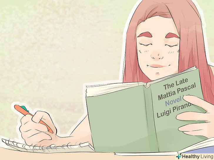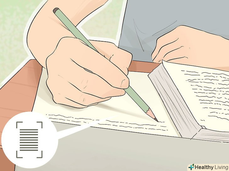 Резюмуйте прочитаний текст.час від часу робіть паузи, щоб записати пару-трійку пропозицій і узагальнити матеріал уривка. Одягайте ключові ідеї у власні слова і записуйте на папері, щоб стежити за тим, наскільки вам вдається розуміти текст. Регулярно переглядайте такі короткі резюме, щоб краще запам'ятати прочитаний матеріал.[11]- Якщо вам важко узагальнити або згадати певну частину тексту, то перечитайте уривок.