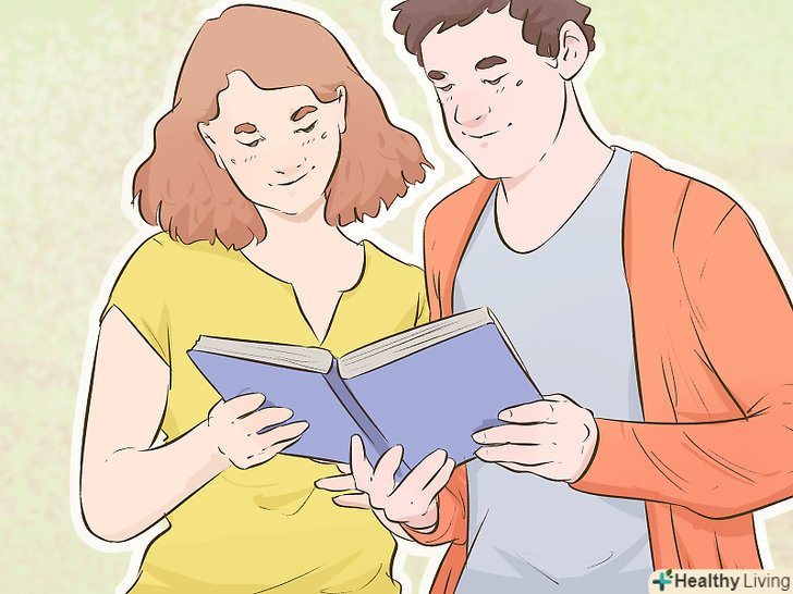 Читайте з другом.читати веселіше і простіше, якщо це не доводиться робити поодинці. Наприклад, можна прочитати один і той же уривок тексту разом з одним і потім обговорити ключові ідеї в бесіді про текст.[13]- Читайте з більш досвідченим і вмілим партнером, щоб навчитися краще читати вголос. Поки ваш партнер буде читати, прислухайтеся до його вимові, темпу і ритму. Потім прочитайте текст самі і вислухайте критику.