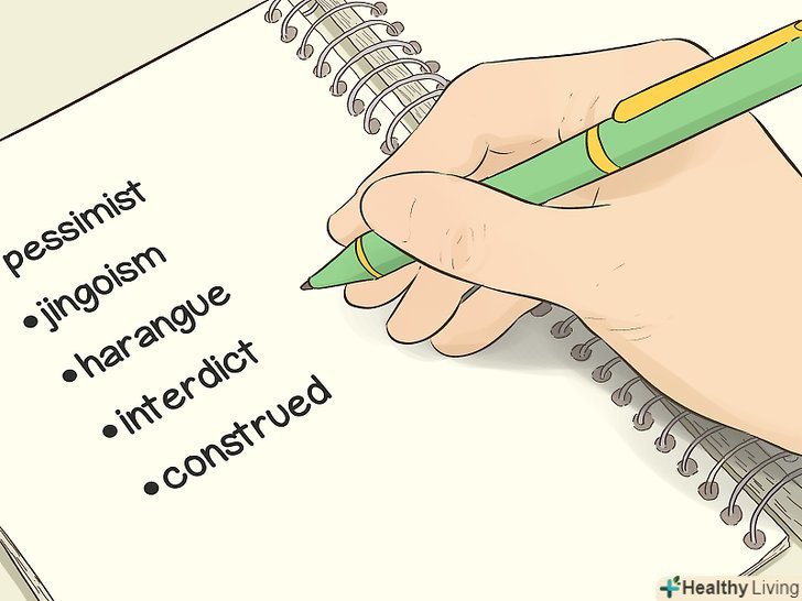 Записуйте нові слова, які потрібно вивчити.якщо вам зустрілися нові слова, значення яких незрозуміло, то запишіть їх і знайдіть в словнику. Це дозволить запам'ятати значення нових слів.[6]